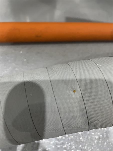 Over time hoses can rupture internally on the first inner layer and then travel in between layers until it finds a weak spot. If there is not a true weak spot, it will start to bulge until it bursts. The internal location of the failure could be at a completely different part of the hose where the liquid escapes from. In your instance there may have been an internal rupture and it found a weak spot in a shallow puncture and never got to the bulge state. Those can happen from the manufacturer in processing from gripper teeth or just from normal brewery wear and tear.
