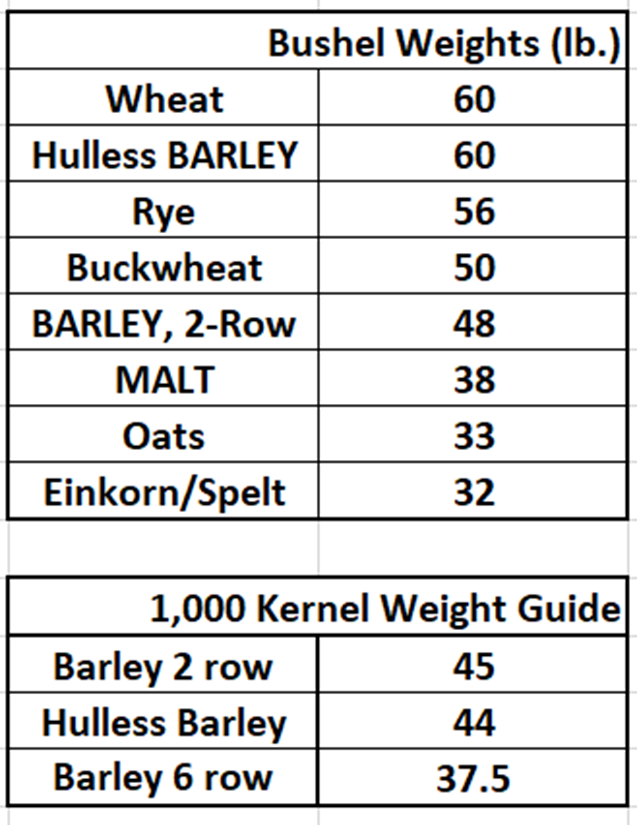 einkorn/emmer/spelt being quite light weight versus the more standard hulless wheat bushel weights; for example.