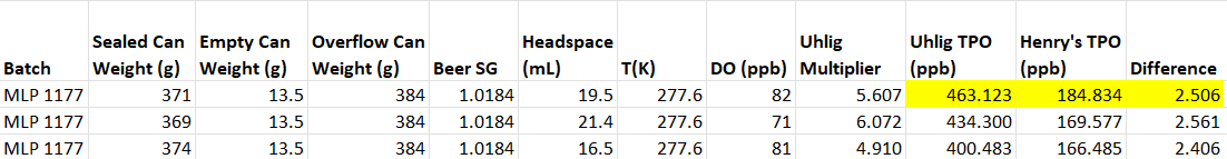 We have recently started taking a much closer look at DO levels off the packaging line with the goal of tracking and setting control limits for TPO values in cans. For calculating TPO I have seen two methods:
